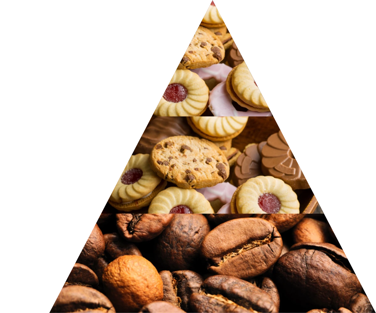A charming sweet scent of fresh pastries and other bakery specialities combined with the tart note of coffee beans
